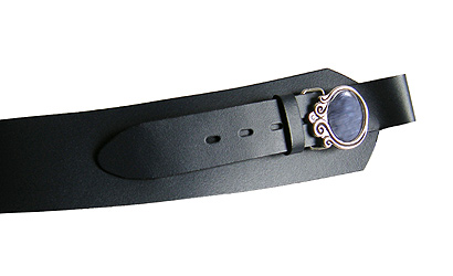 ca. 8cm zu 4 cm zulaufend, asymterischer Bauchschmeichler mit Schmucksteinschließe, Koppel, altsilberfarben. Rindspaltledergürtel in verschiedenen Farben möglich.